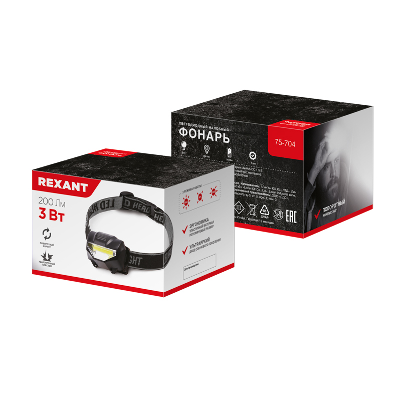 Налобный фонарь с мощным ярким COB диодом REXANT отлично подходит для рыбалки, охоты, во время строительных и ремонтных работ.